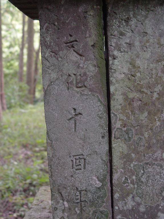 縦書きで文化元号が刻まれた祠をアップで撮影した写真の拡大画像 (JPEG: 83.1KB)